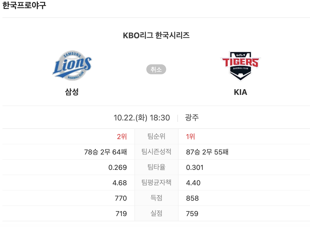 10월 22일 KBO 리그 한국시리즈 삼성 대 기아 (samsung vs kia)